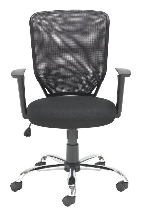 Mesh back office chair with a cushioned fabric seat and fixed arms. Complete with lock tilt mechanism and chrome base. An everyday office or home office chair to suit any budget.
